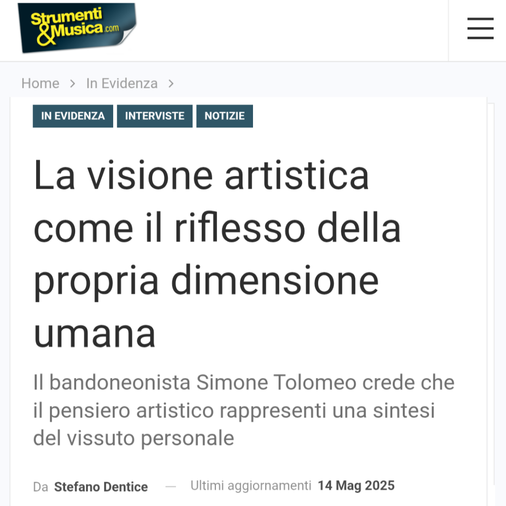 Bandoneonist Simone Tolomeo believes that artistic thought represents a synthesis of personal lived experience.
